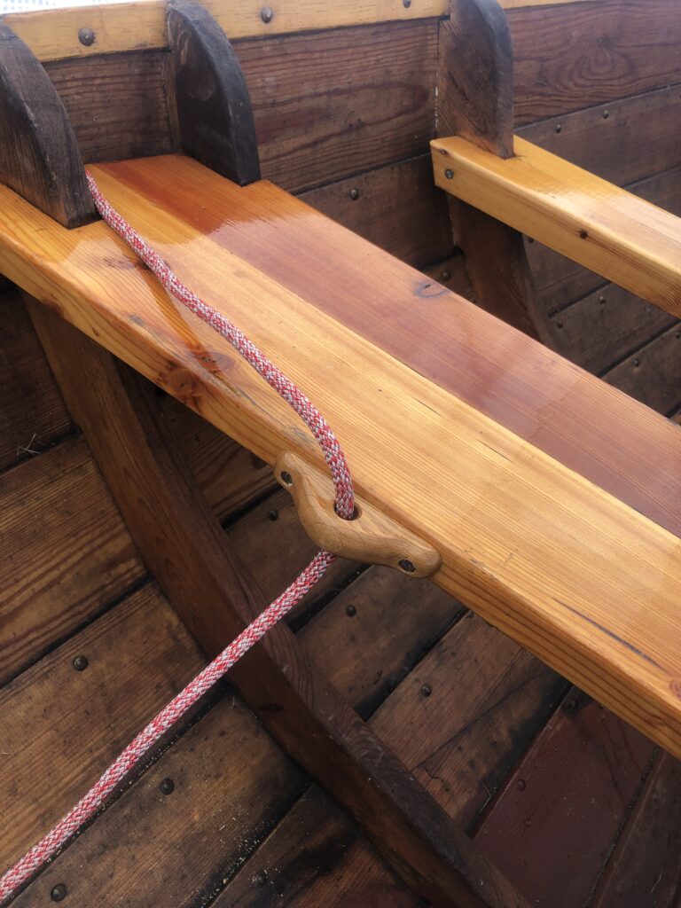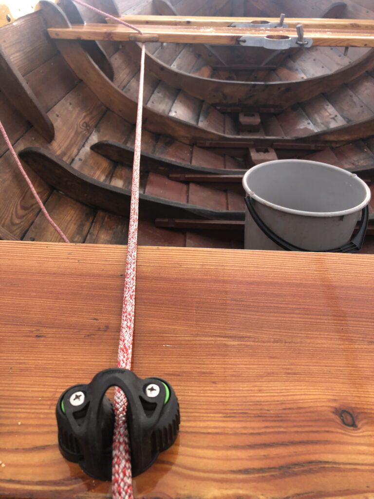 Jag valde tradionell skotning när jag byggde båten, som när tvåmänningar byggdes förr i tiden. Nu vill jag förenkla så det går lättare att segla själv. Jag planerar modernisera med nyare beslag och linor.